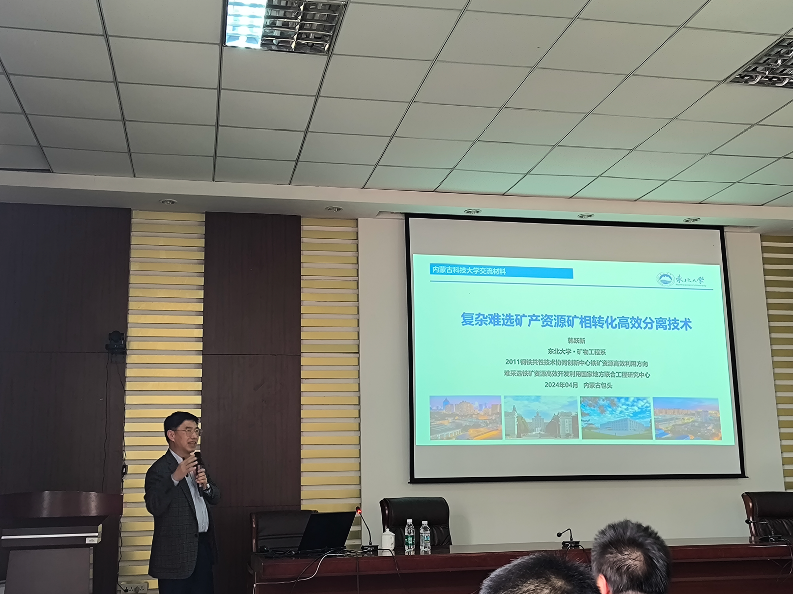 韩跃新教授首先介绍了矿产资源与矿业的重要性,分析了矿产资源开发面临的主要技术问题和突破方向,随后介绍了团队在难选铁矿资源氢基矿相转化与高效分选技术、氢基矿相转化(悬浮磁化焙烧)系统装备研发与应用等方面的创新性成果,紧接着介绍了研究成果在赞比亚铁锰矿、阿尔及利亚GARA、酒钢、海南矿业等铁矿的成功应用实践,最后介绍了氢基矿相转化技术在含钒页岩、高碳低硫低砷金矿、氰化尾渣及锂辉石等高效分选方面的技术研究成果。报告会后韩跃新教授与学院师生就科研创新与应用实践进行深入交流,本次学术报告为学院师生科研工作提供了重要的指导作用。