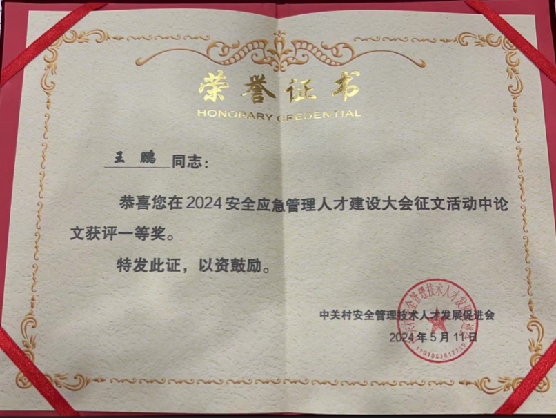 教师王鹏提交的论文“多因素耦合下煤矸石山自燃危险性综合评估与控制策略研究”获得一等奖、陈景序提交的论文“地区应急人才培养模式与全产业链服务探究”获得二等奖。