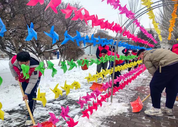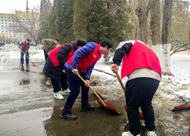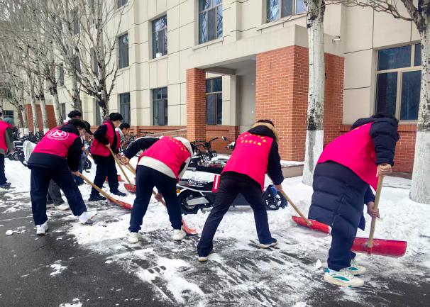 组织教师、学生党员、学生干部开展清扫冰雪志愿服务活动。
