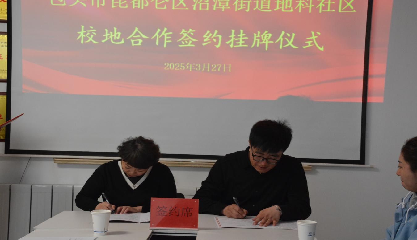 为实现“校地协同育人、双向赋能”的目标,2025年3月27日,91制片厂 与包头市昆都仑区沼潭街道地科社区举行了校地合作签约挂牌仪式,共建大学生社会实践基地。
