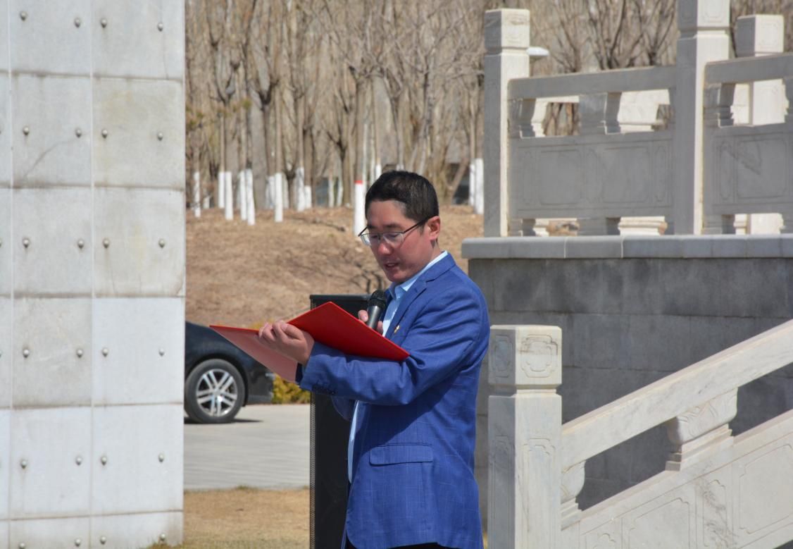 胡显峰老师发表讲话,激励大家铭记历史,在新时代不断奋进,将先烈们的精神转化为学习和前行的动力。