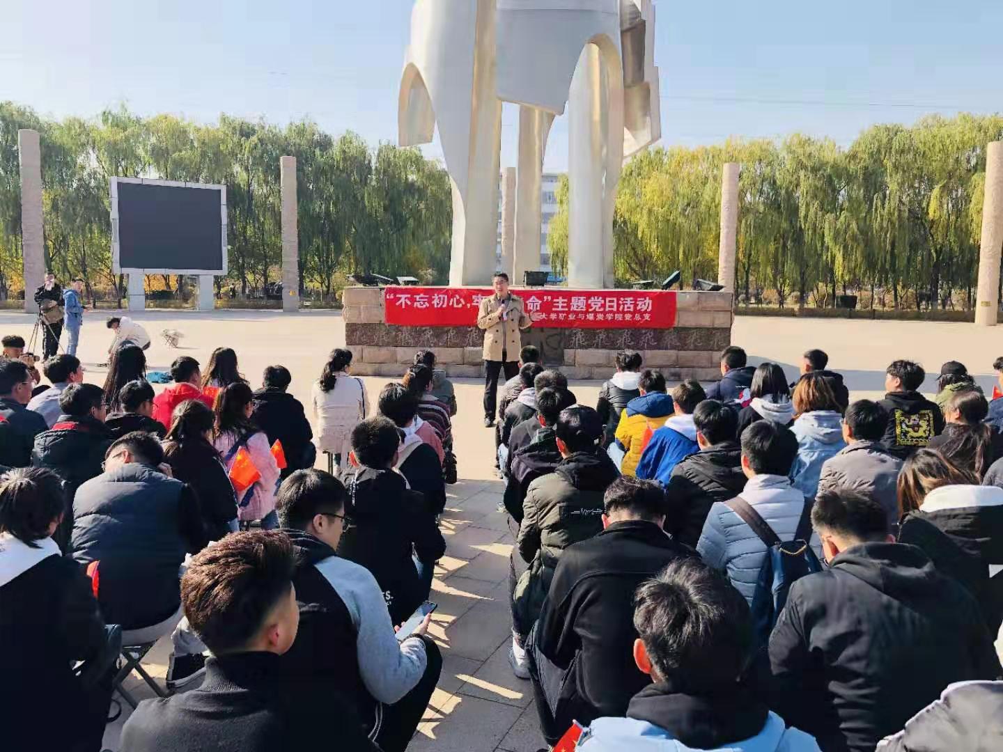组织全体学生党员到北方兵器城开展庆祝中华人民共和国成立70周年“不忘初心、牢记使命”主题党日活动,学院党总支组织委员、学生党支部书记胡显峰老师为学生进行主题党日教育现场讲党课。党课主要围绕以下内容展开讲解: