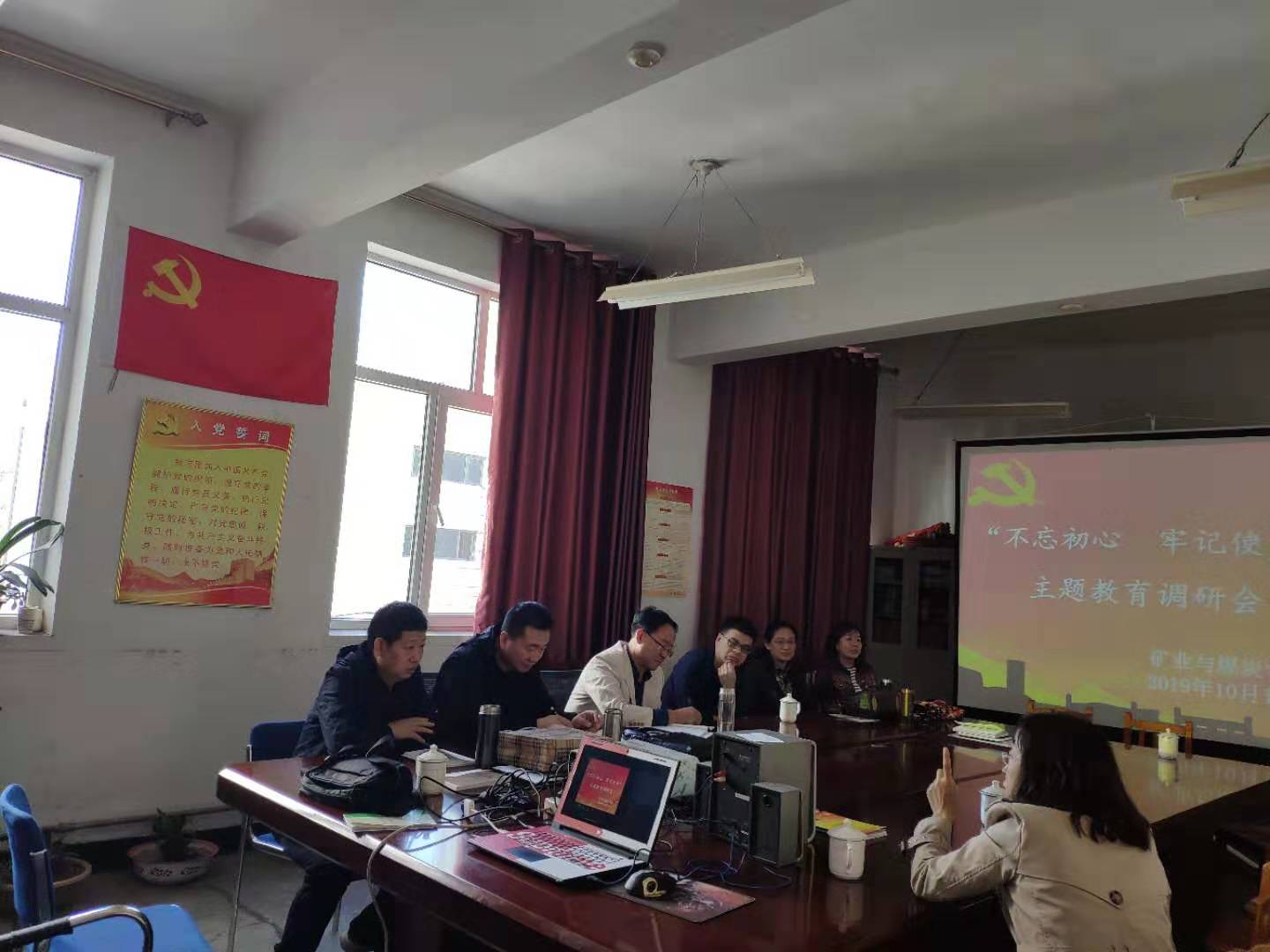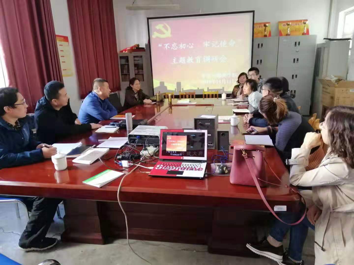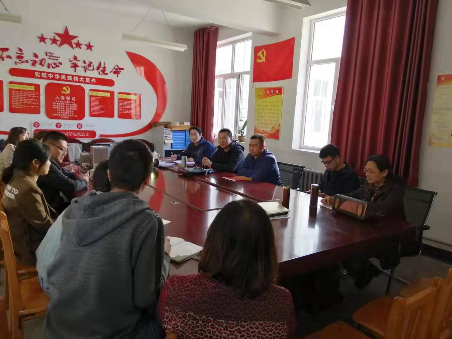 中心组成员组织学院办公室、教务科、实训科、培训科等职能部门工作人员在临曦楼204党员之家开展“不忘初心、牢记使命”主题教育调研会。