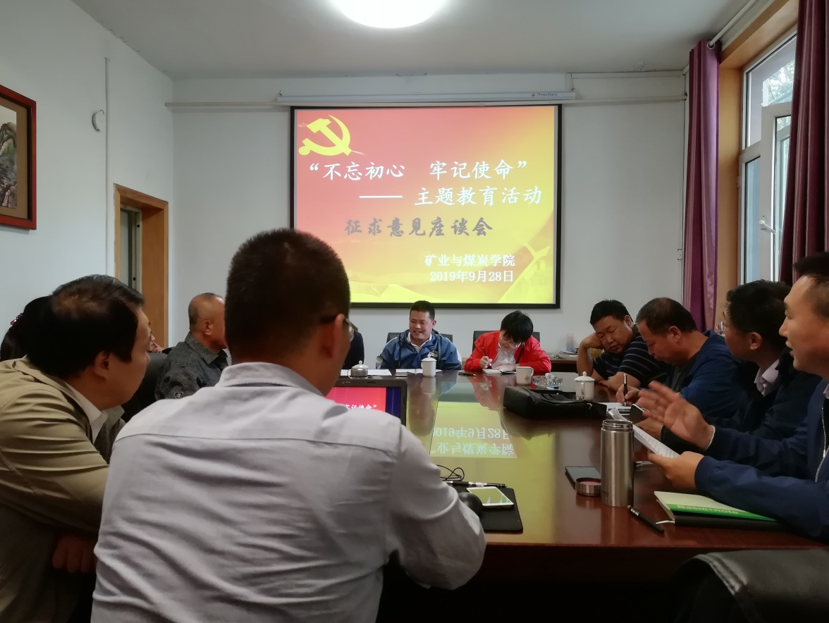 党总支中心组在学院办公楼102开展“不忘初心、牢记使命”主题教育之教师代表座谈会。
