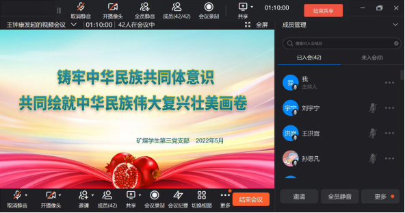 2022年5月27日晚18:00,91制片厂 学生第三党支部于钉钉平台召开党员党课学习,本次学习的主题是:铸牢中华民族共同体意识,共同绘就中华民族伟大复兴壮美画卷。领学人:闫妍同志。