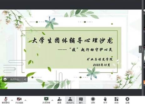 于线上腾讯会议开展了第十六期以“疫”起行动,守护心灵”为主题的大学生团体辅导心理沙龙。