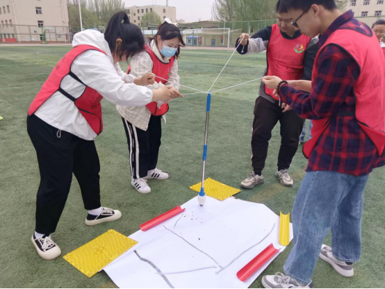 活动中,工作人员带领同学们有序进场。在工作人员的指导下,同学们进行分组并进入本次素质拓展的游戏环节。