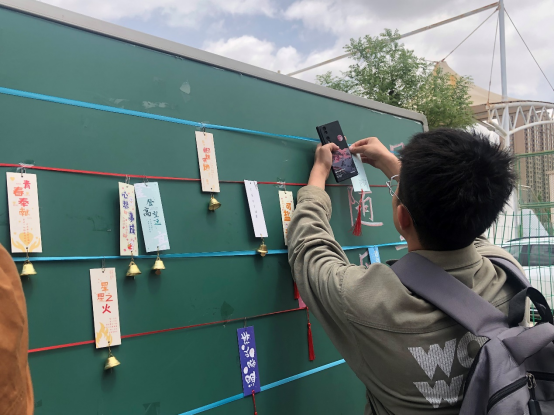 活动中,同学们将手中的材料,把自己的感受运用色彩、图画,一笔笔涂鸦在风车上,还有的同学选择了不同的卡片进行留言,制作出了一份份极具巧思的作品。