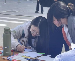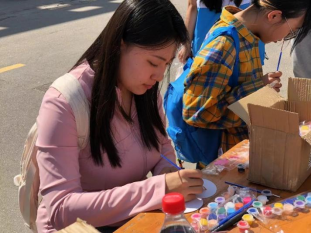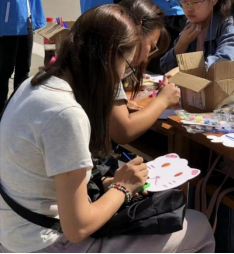 在梅园门口举办“巧手绘心,妙扇生花”活动。