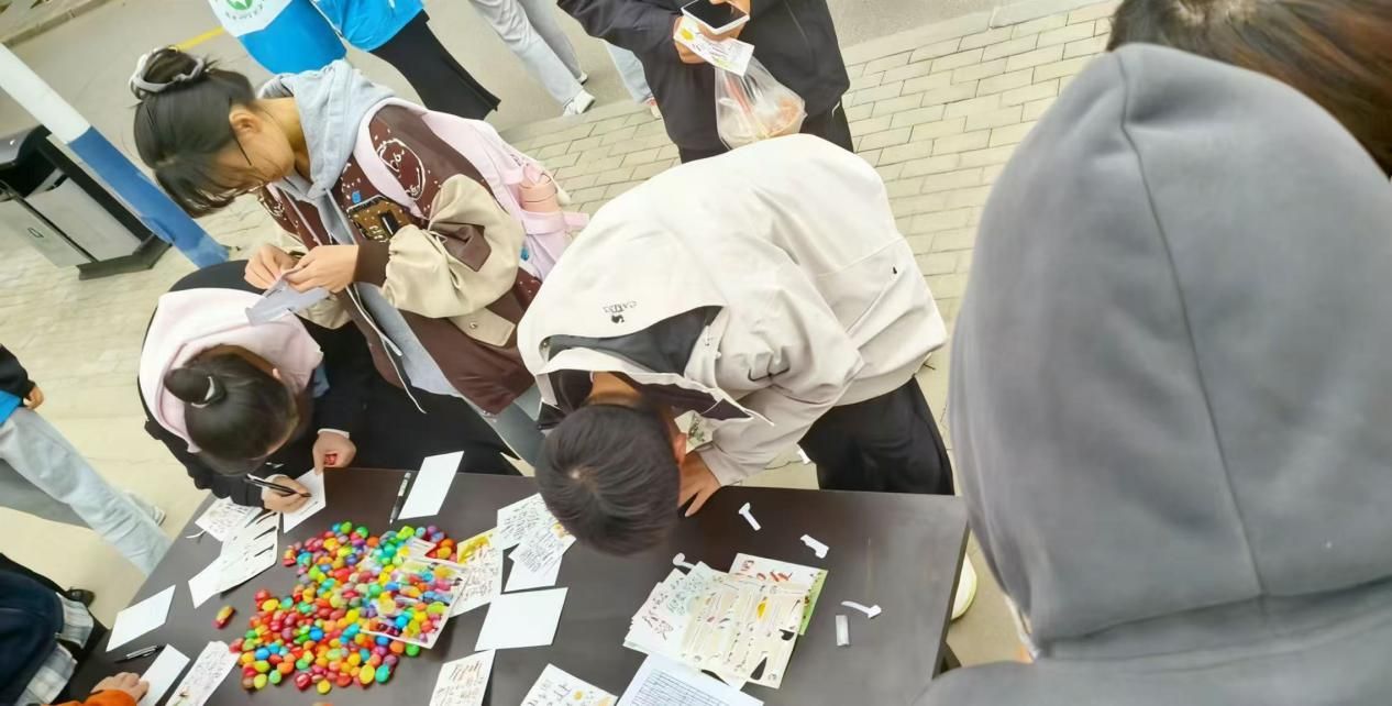 活动现场的留言墙上贴满了彩色便签:“今天实验成功了,像吃到跳跳糖一样开心!”“和室友闹别扭,心里酸酸的…”每小时整点,大家还会暂停手中的糖果,参与1分钟情绪快闪分享——有人笑着举起糖果,有人轻声说出烦恼,而这些瞬间都被温柔接住,化作彼此理解的微笑。