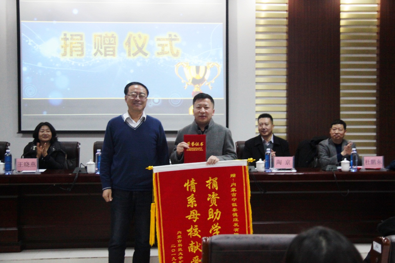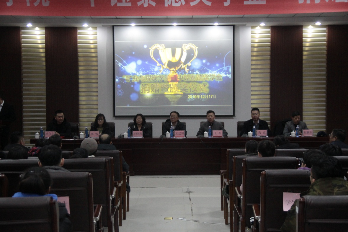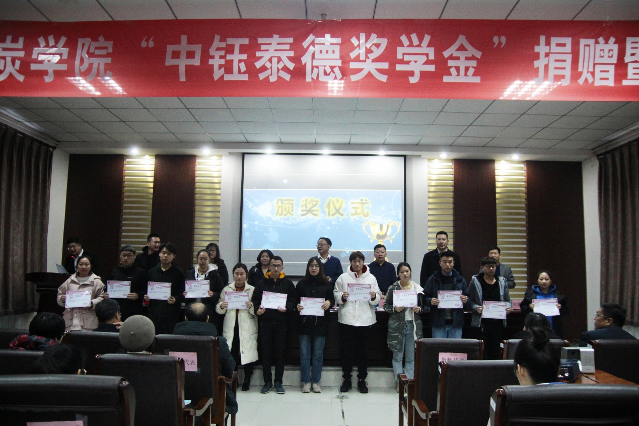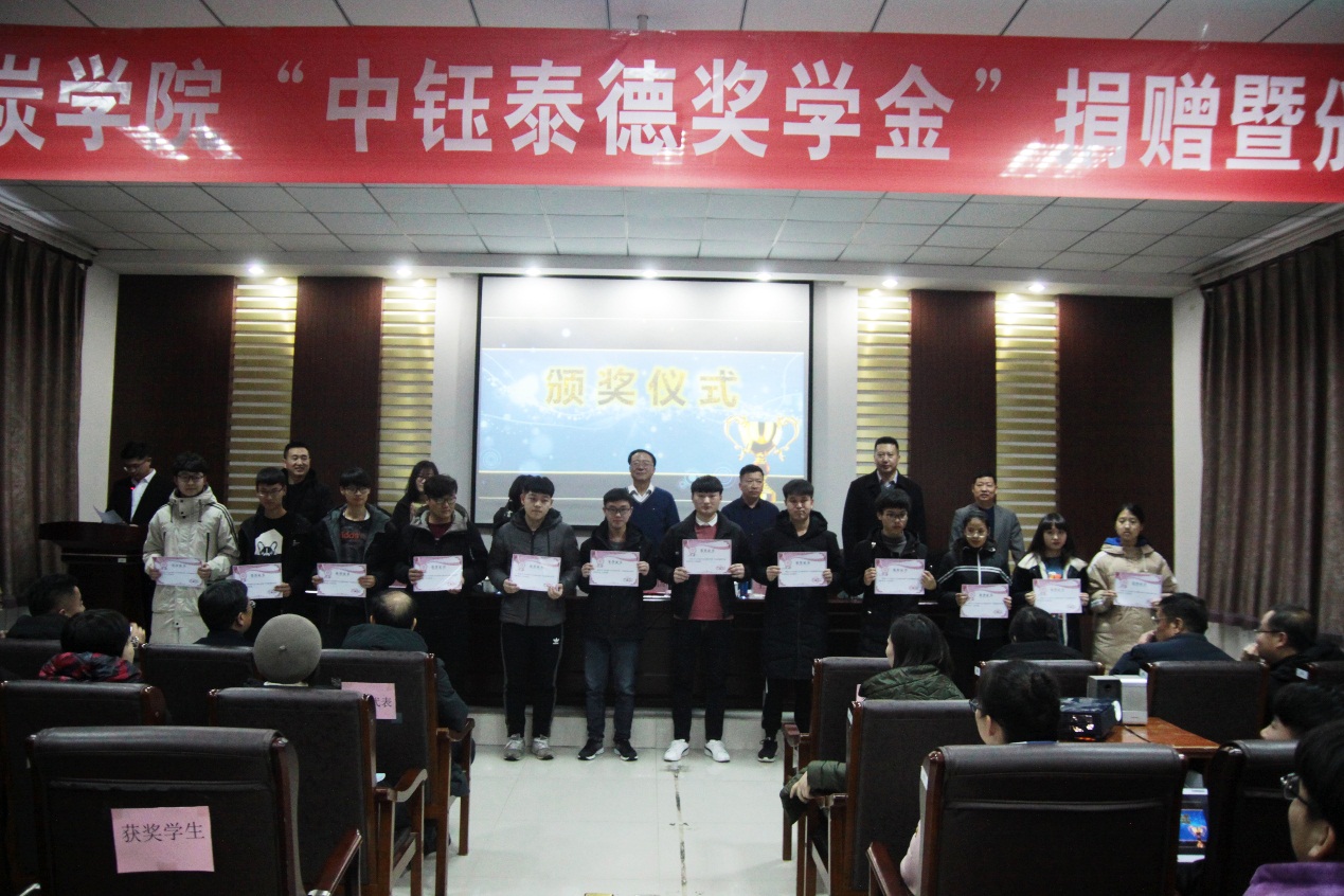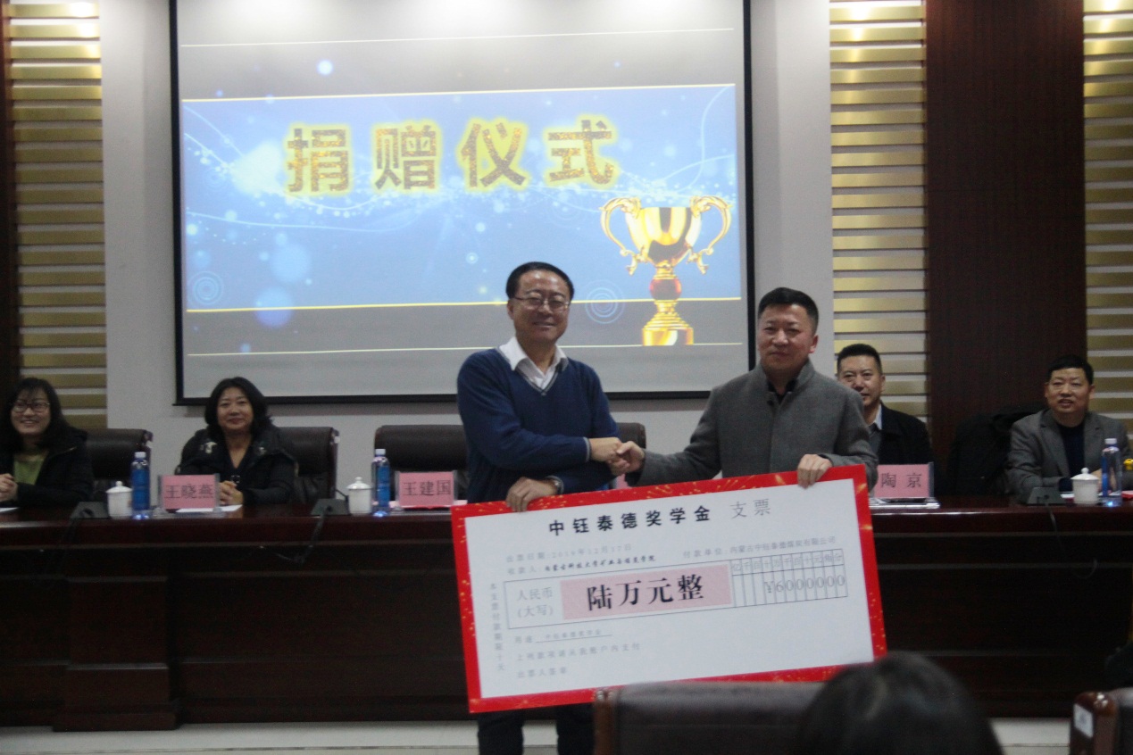 在实验实训楼会议室举行了“中钰泰德奖学金”捐赠暨颁奖仪式。出席本次会议的领导有:内蒙古中钰泰德煤炭有限公司董事长兼总经理王军、副总经济师王晓燕、人力资源部经理陶京、人力资源部社保主管李雪;91制片厂