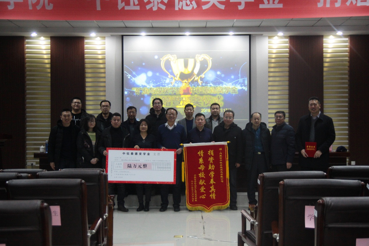 的捐资助学这一善举。“中钰泰德奖学金”对获奖学生而言,是对他们刻苦学习的肯定和嘉奖,对其他学生而言,是对他们未来学习的鼓舞和鞭策。同时也强调,获奖学生要心怀感恩,时刻不忘回馈社会及帮助过自己的人。