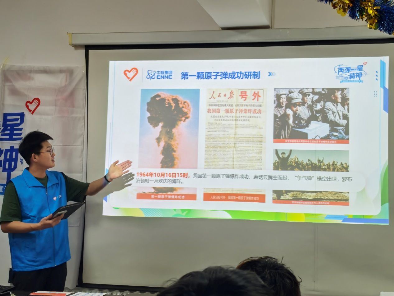 学子开展主题为“铭记‘两弹一星‘功勋——王淦昌、郭永怀的英雄史诗”的志愿宣讲活动。
